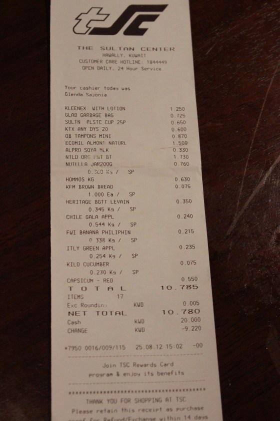 We love the two Lebanese restaurants between our apt and school! Bread & hummus from one, falafel wrap from the other…all for less than 1KD!